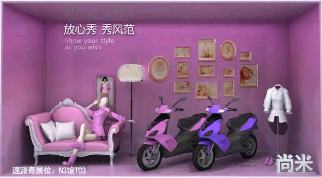 本次展览设计馆,围绕“速派奇、放心骑”的品牌定位,通过场景展示,将放心产品与放心生活完美演绎!