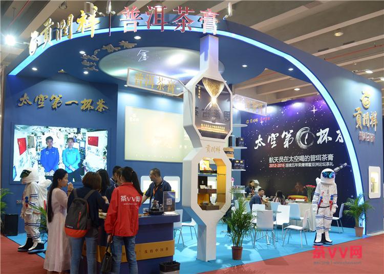 贡润祥的太空第一杯茶吸引了众多观众的目光。专注茶膏,独一无二的太空茶理念,是其主打。