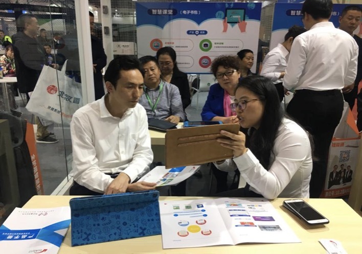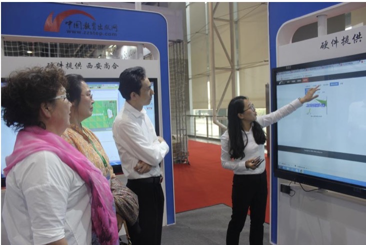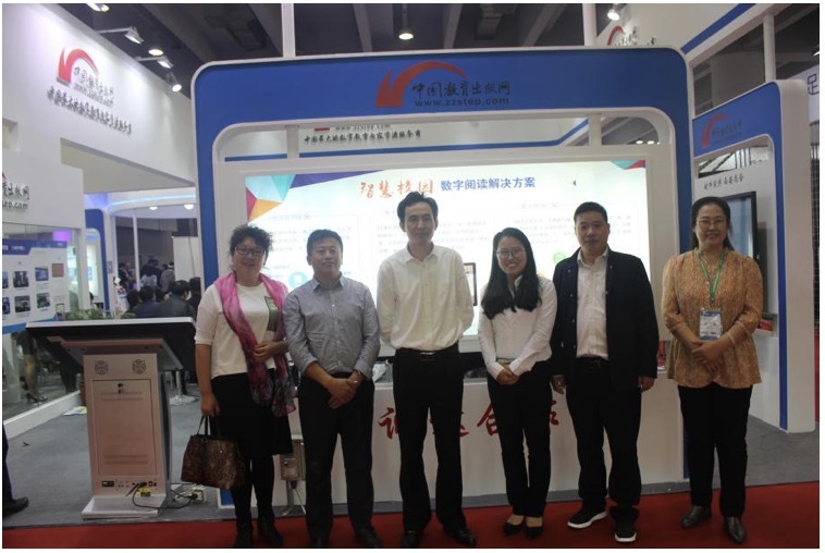 中国教育出版网展览设计台熙来攘往,人头攒动,中国教育信息化云平台、智慧课堂、中小学数字图书馆等产品大受欢迎,受到了张明亮董事长等众多企业家与专业观众的肯定和支持!