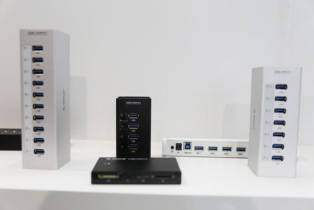在本届展会上,ORICO就带来了多款USB Type-C Hub的产品。据了解,这些Hub产品的主要功能是用来进行数码产品的多端口扩展。这类产品都会在每个Hub上扩展出多个USB 3.0 Type-A、USB 3.1 Type-C以及USB 2.0接口,最高传输速度可以达到5Gbps,实现免驱动安装和即插即用。