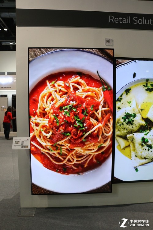 从实际展示效果看,OLED屏幕充分展示了色域广,厚度超薄,色彩艳丽等特点,在本来就五光十色的LG商用展台上,同样能够让人眼前一亮。